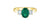 10K yellow gold ring, set with a lab created emerald and 2 lab created diamonds totalling .40 carat. Size 6.5 and may be slightly sized. Includes certificate of authenticity.