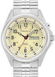ESS IS MORE WITH THIS GRACEFULLY PROPORTIONED STAINLESS STEEL CASE WITH EASY-TO-READ NUMERALS ON SILVER-WHITE SUNRAY DIAL. ALTERNATING POLISHED AND BRUSHED THREE-LINK STAINLESS STEEL BRACELET WITH JEWELER’S CLASP CLOSURE.