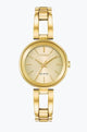 Make a distinctive style statement. Featuring a gold-tone stainless steel case steel case and a champagne 3-hand dial encased in sapphire crystal, this timepiece is a combination of functional simplicity with a touch of elegance. The gold-tone