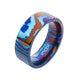 Men's Damascus 7mm Matte Black Plated Band Ring. Available sizes: 9 and 13 Damascus Steel is the result of banding and mottling 2 types of steel into distinctive patterns reminiscent of flowing water. This process not only gives its unique look but also gives resistance and strength. INOX's Damascus Steel technique includes an updated through our signature color coating processes to create modern jewelry that stands as symbols of strength and luxury for men.