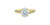 14K yellow gold ring, set with a 1.59 carat lab created oval diamond. The shoulders are enhanced with 34 lab created diamonds totalling .20 total carat weight. Size 6.5 and may be slightly sized. Includes certificate of authenticity.