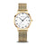 This women's watch is a masterpiece of Scandinavian minimalism: a slim, gold-tone stainless steel case surrounds a clean white dial, highlighted by simple hour markers and delicately crafted hands. No distractions – just pure, graphic elegance, echoing the contrast of light and shadow found in Arctic landscapes.