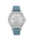 DKNY Women Watch, Silver Color Case, Silver Dial, Light Blue Leather Strap, Multi-Function, 5 ATM. Stainless steel.